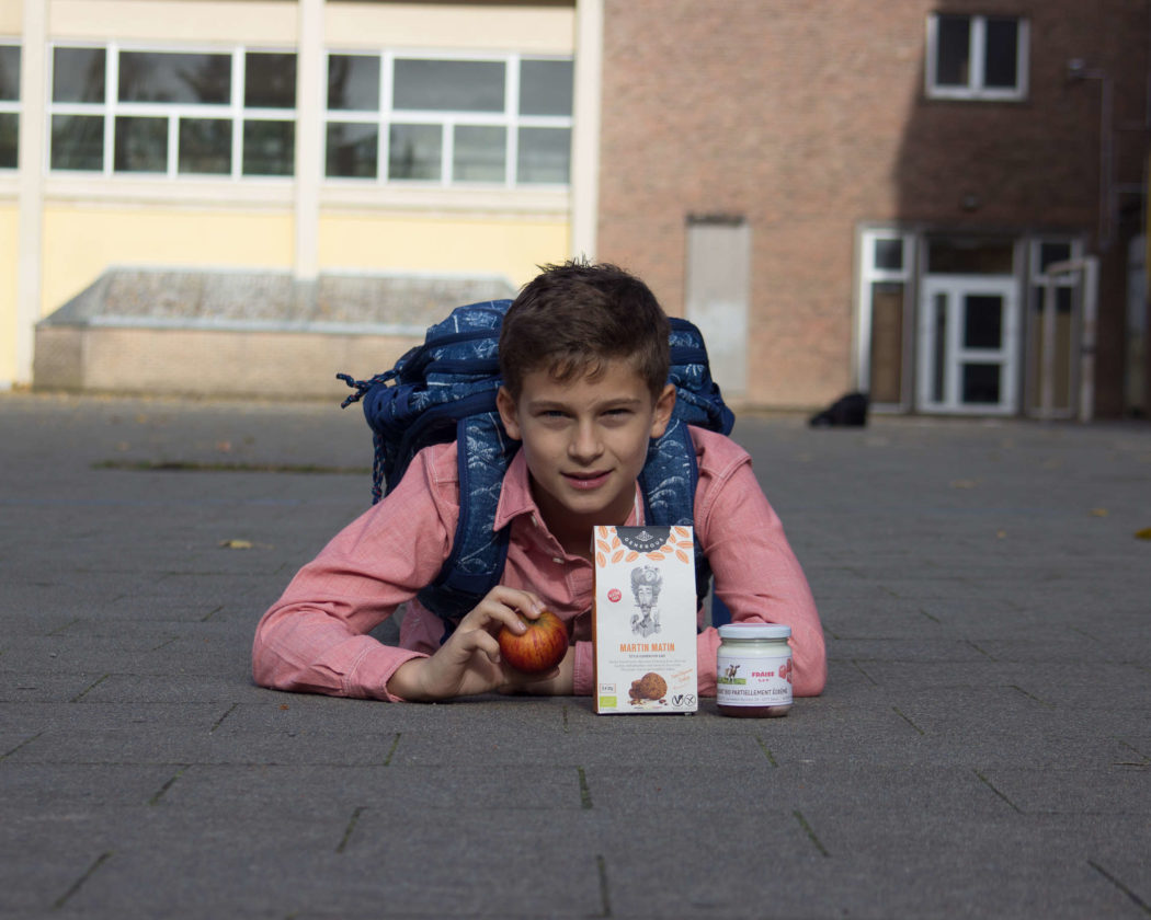Uniquement pour les écoles, nous mettons en place une solution innovante de vrac de biscuits et fruits directement livrés en classe. Découvrez nos gammes sur demande directement via notre page contact. Nos collations coûtent 0,50€ sont labellisées biologiques et au maximum locales. Pour toute commande, adressez-vous à votre école. Découvrez ici nos écoles partenaires.